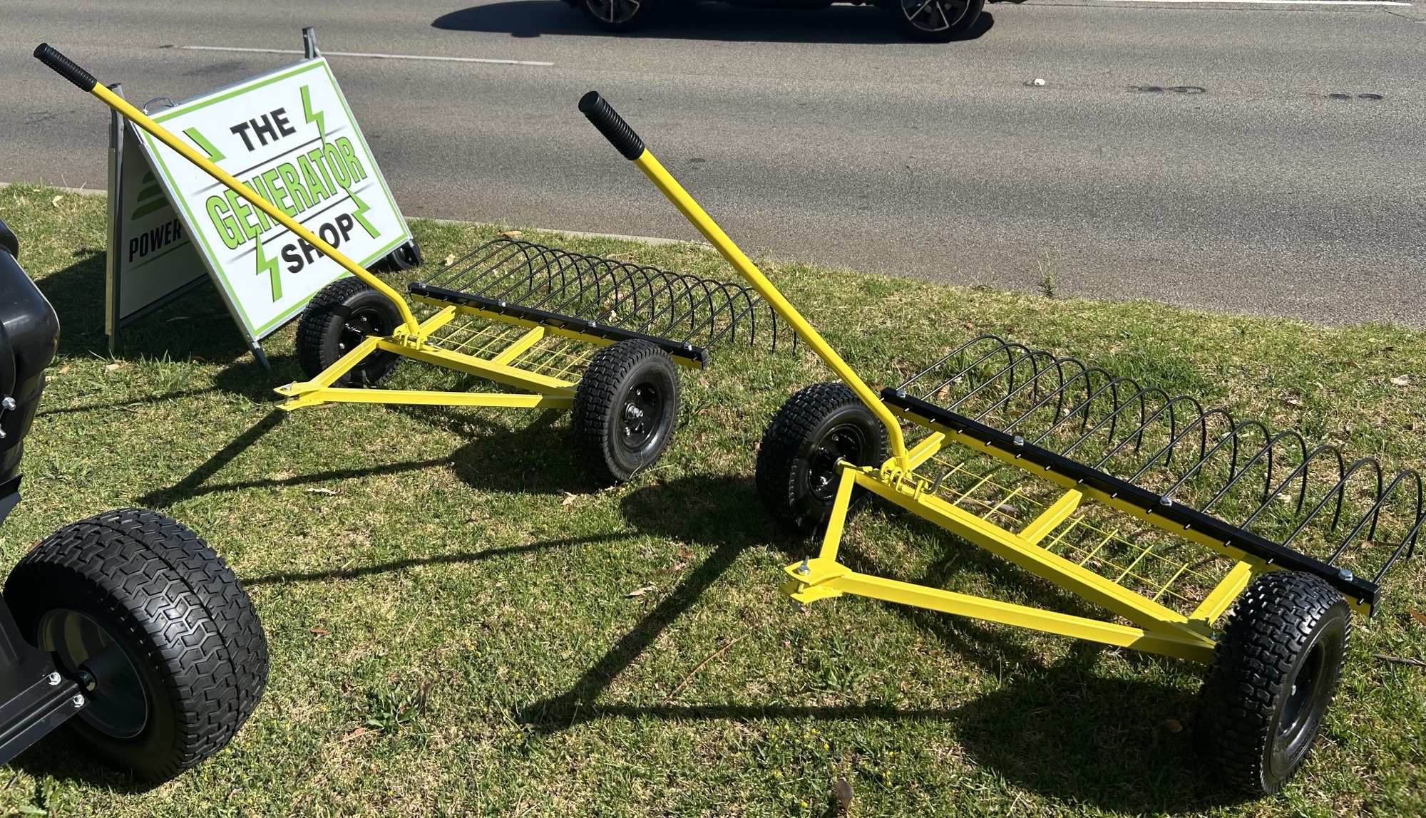 This tow-behind stick rake is perfect for clearing, sifting soils/rocks and helping prevent fires by removing unwanted shrubbery and overgrowth.